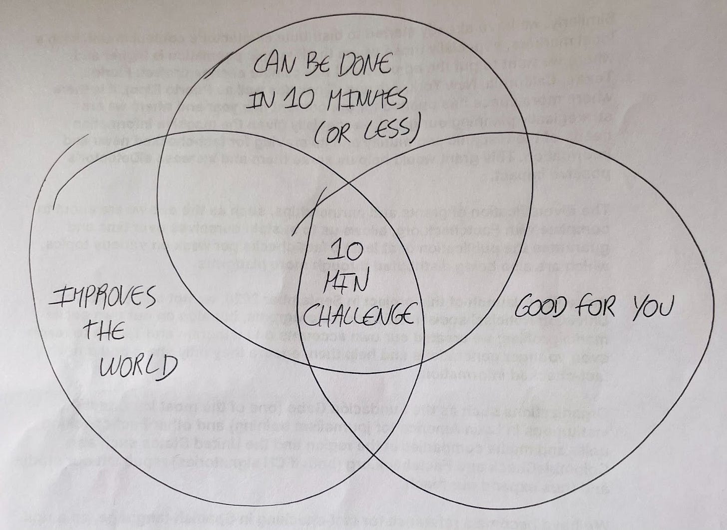 Thereās an intersection with untapped potential between ideas that are good for the world, good for you, and can be done in 10 minutes or less. Different iterations of this concept had been circling my head for a while, until two weeks ago when the coin dropped (la locha!) and I sketched this scruffy venn diagram before clocking out from my home office in Buenos Aires, Argentina:Ā